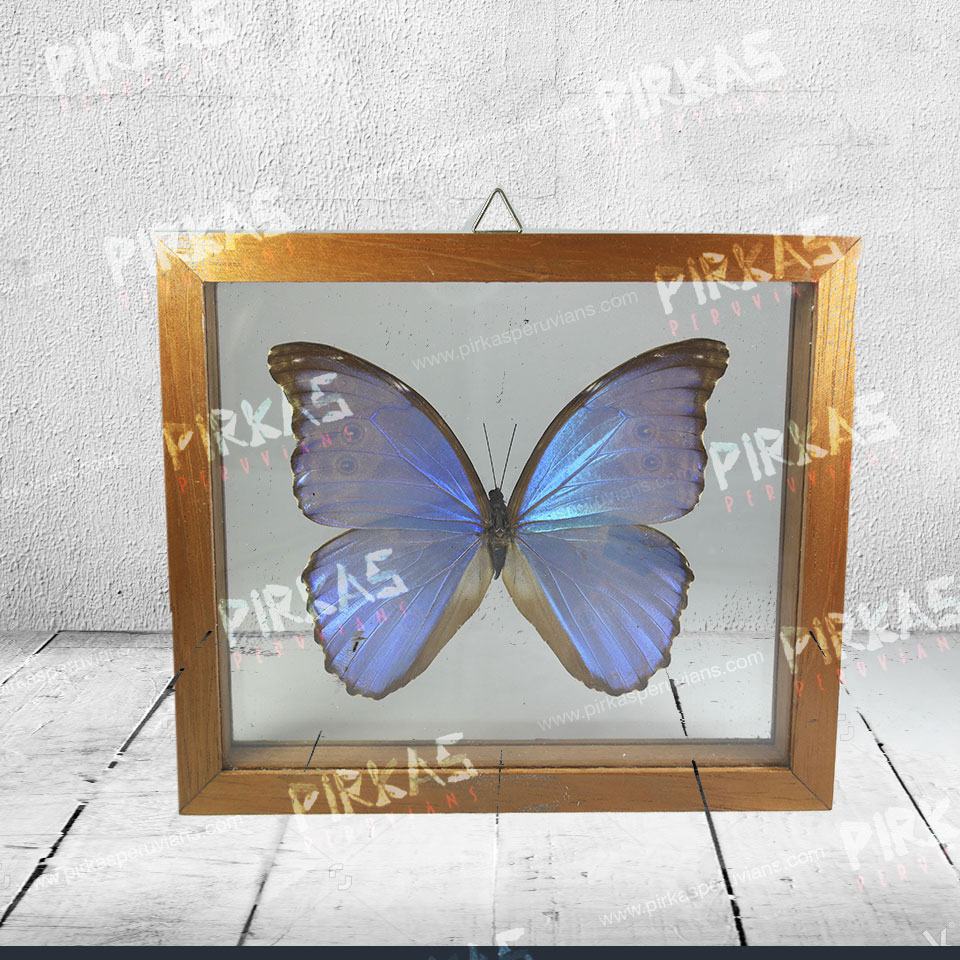 MARIPOSA MORPHO DIDIUS MARCO DE MADERA